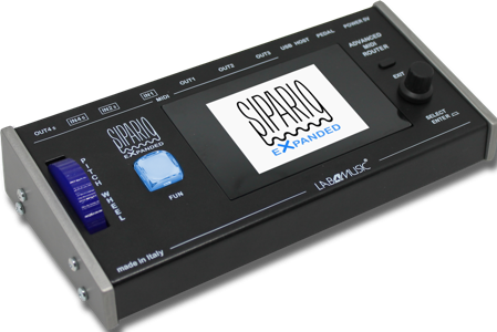 SIPARIO is a MIDI router designed to be at the center of a keyboard setup in order to always have the sounds ready to use. The musician creates his own lineup of tracks (SCENES) and within each programs the sounds. During the execution the player passes from one configuration to another either by pressing on the touch display, or in sequence, by pressing the pedal connected to SIPARIO or through the backlit button that is located on the front of the device. In every moment the musician decides what to play and from which keyboard, by programming splits and layers among different sources. Programming is done without the use of a PC and through the touch display. Now in the expanded version.