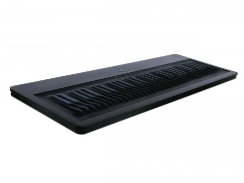 Introduced in early 2013, the Roli Seaboard Grand provides a soft, three-dimensional surface consisting of ridges — Roli refers to them as “Keywaves” — arranged like the eighty-eight notes on an acoustic piano keyboard along with flat, ribbon-like bands that stretch across above and below the “keys.” Each segment responds to velocity, pressure, and location, allowing the Seaboard Grand to transmit control data for pitch, volume, and timbre through its USB connector. It also provides an input jack for footswitch control. (Juan Trujillo, courtesy of Roli)