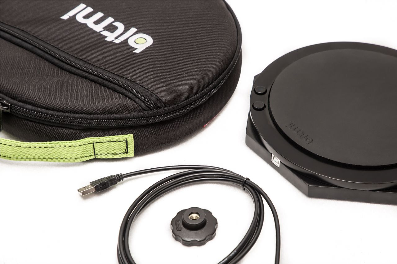 It’s called Bitmi, a USB MIDI velocity sensitive drum pad. Bitmi was designed to be simple and effective as a tool to record percussive MIDI tracks.