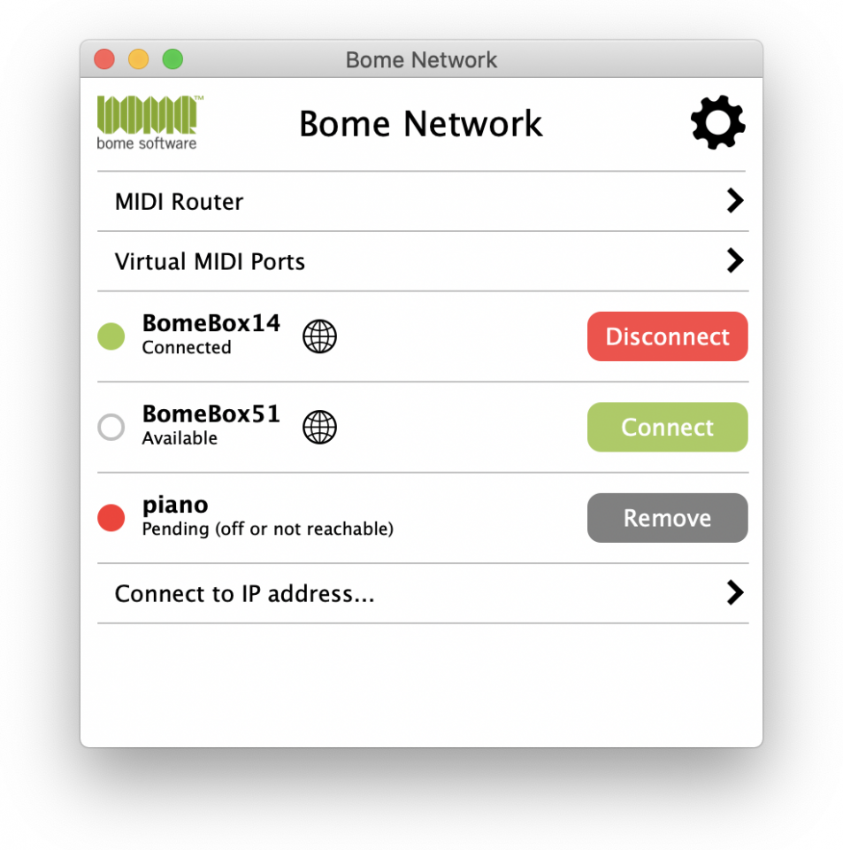 - Remote Direct MIDI: directly access all MIDI devices connected to a BomeBox or a remote computer