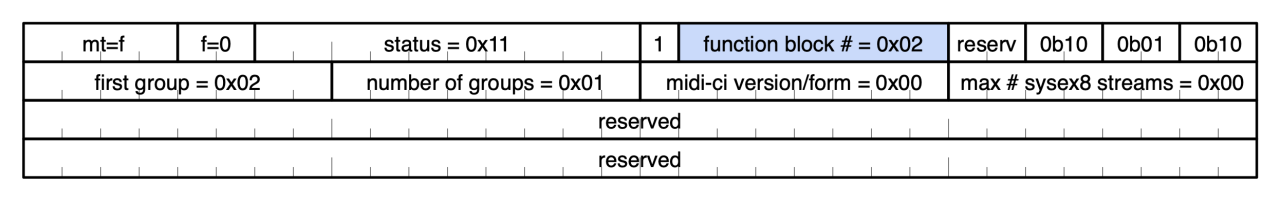 | bMIDIProtocol | Block Protocol | 0x11 (MIDI 2.0 Protocol) |