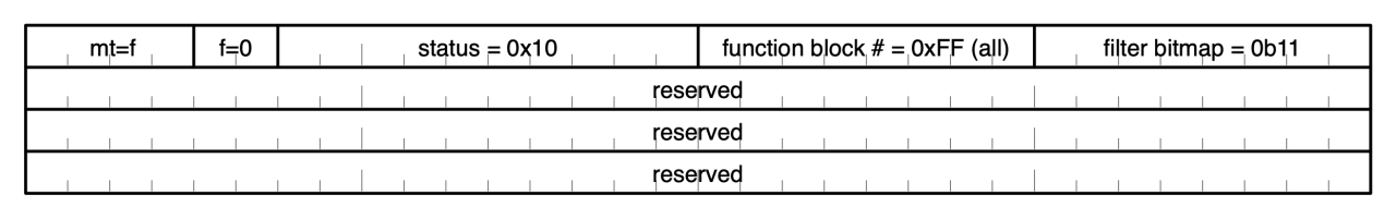One of the first UMP messages that your device may receive is the Endpoint Discovery Message. This example is asking for all information available about the UMP Endpoint.