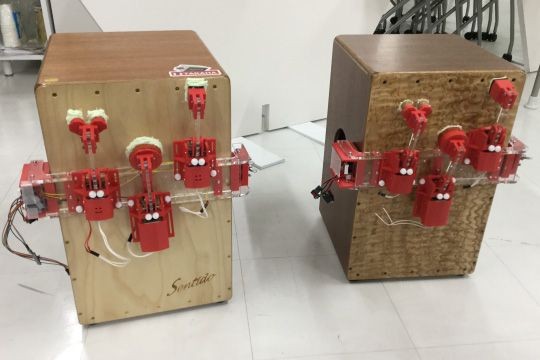 The Cabot percussion robot was conceived by Hideaki Iio, Director of the Cabot development team and guitar player/singer.