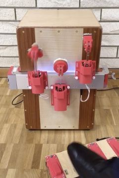 Cabot’s target market is solo perfomers who want to add cahon accompaniment to their live solo performances. A foot pedal allows you to select different MIDI patterns in realtime.