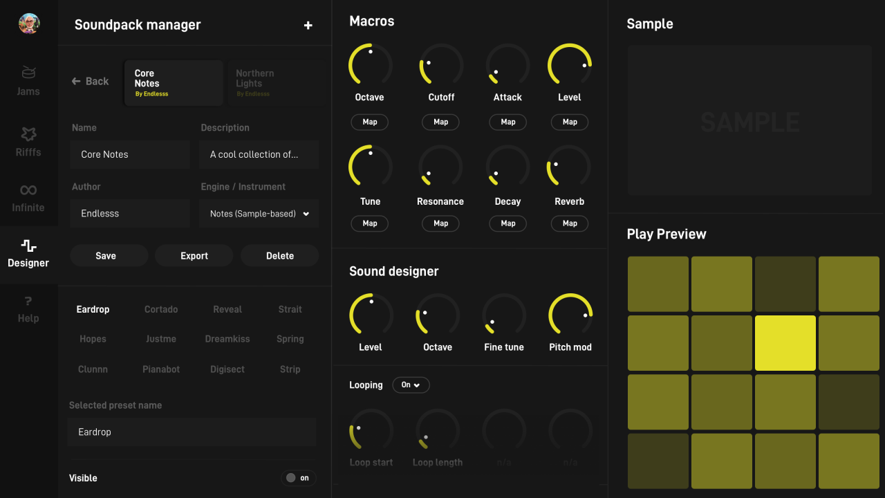 – Play a growing library of sound packs & instruments