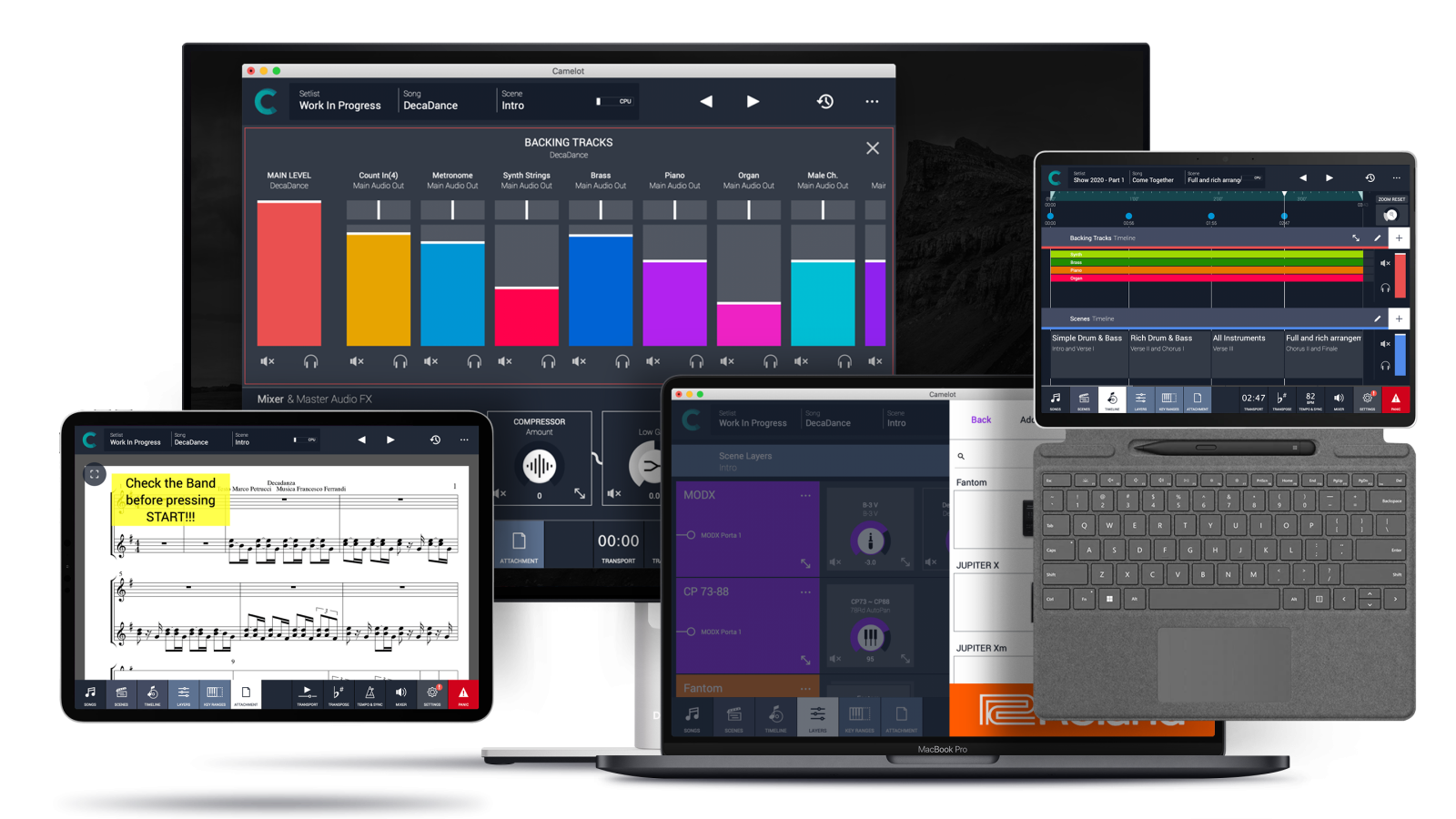 Camelot is a Setlist Manager, a Software Instrument & FX Host, a PDF Music Score reader, a Multitrack Audio Player, and the most advanced Audio/MIDI Patchbay and Router.