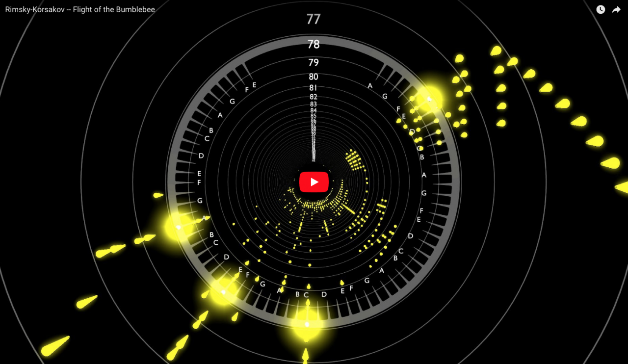 Multimedia artist Andy Fillebrown creates visualizations of classical, public domain musical compositions. His YouTube channel, audiosculptures, is filled with 100+ spellbinding journeys through a tunnel of glowing, pulsing notes.
