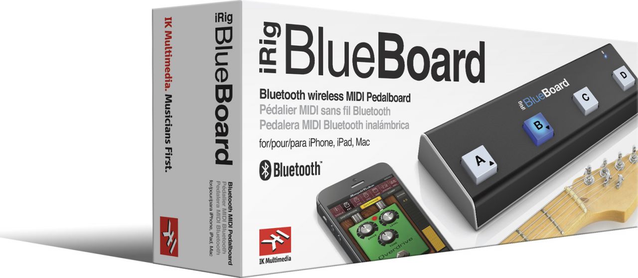 The IK Multimedia Blue Board uses the new BTLE (Bluetooth Low Energy) MIDI specification so you can control your music apps wirelessly with your feet!