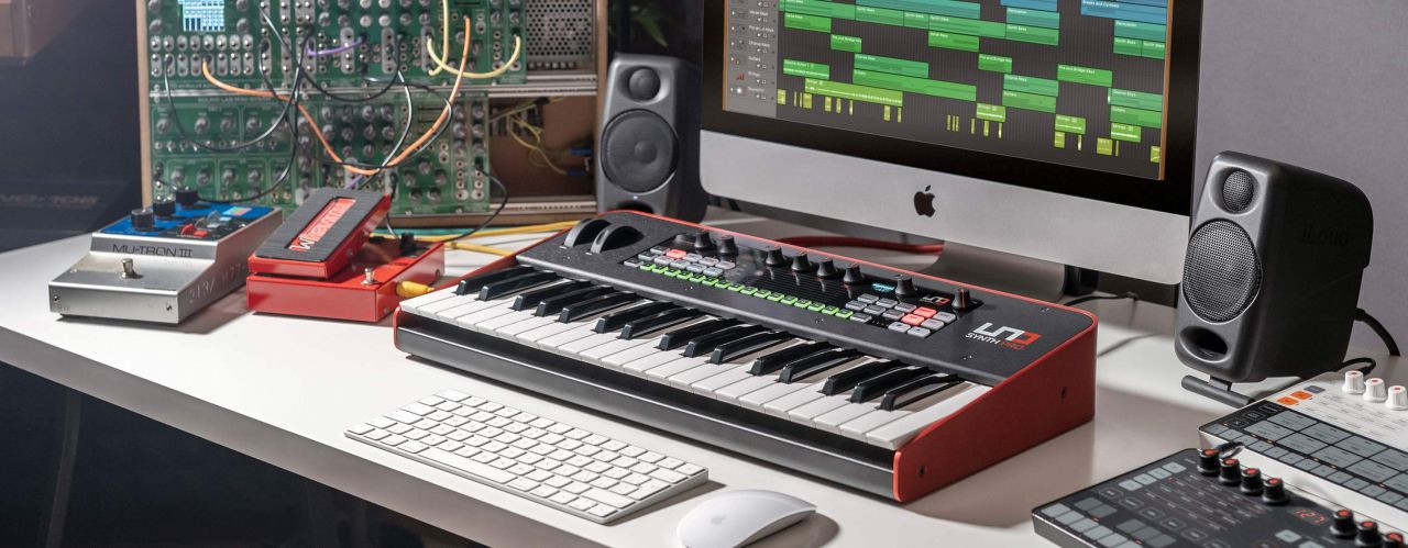 The new IK Multimedia Uno Pro lineup has two versions- the Synth Pro features a 37-note Fatar keyboard and pitch/mod wheels while the Synth Pro Desktop version has capacitance-sensing keys and pitch/mod touchstrips. But the connectivity and sound engines for each model are the same.