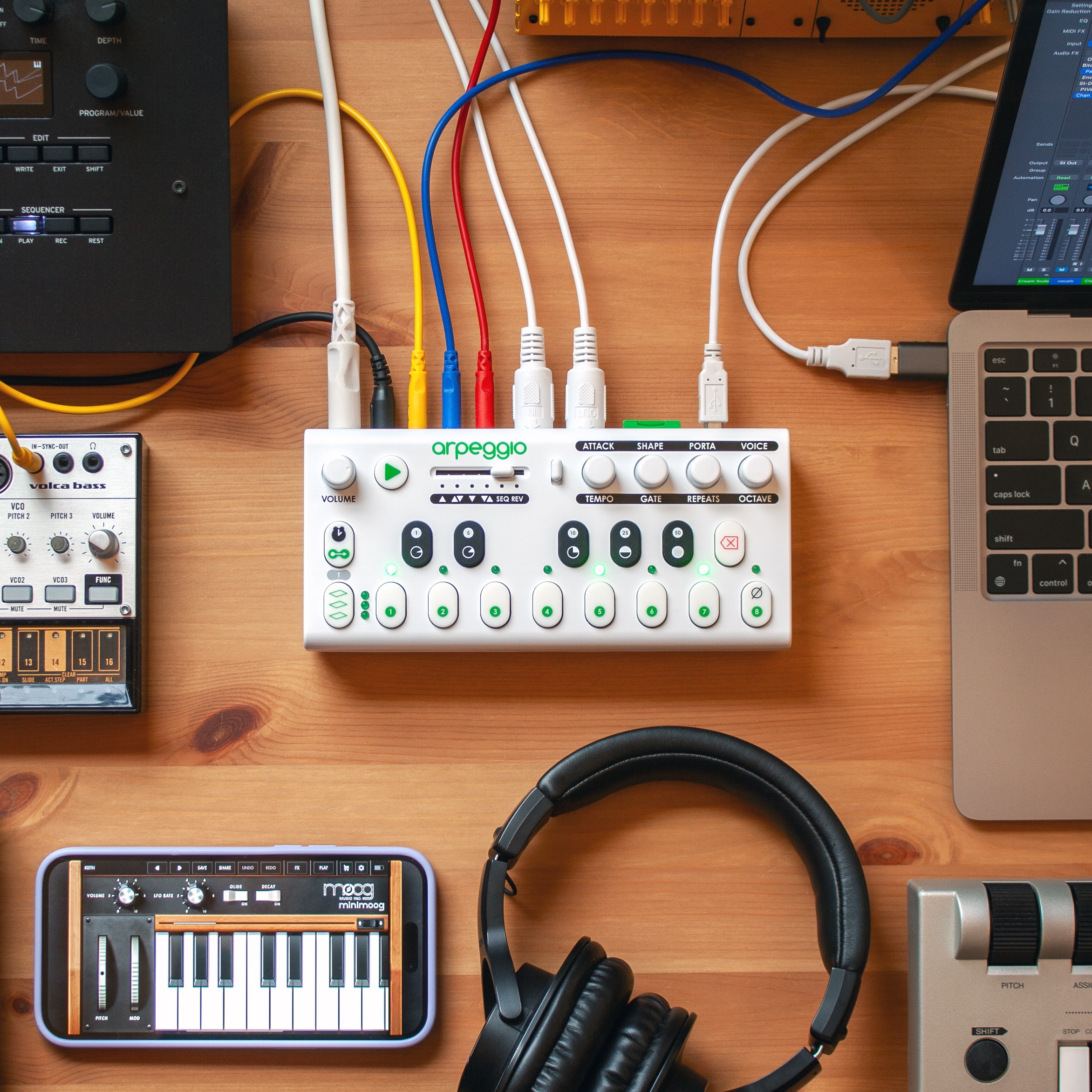 Arpeggio is the first and only battery powered / portable arpeggiator. Its minimalist design and interface lets you intuitively sequence, save, and play back hundreds of melodies. The included Arpeggiator Overlay lets you create millions of custom arpeggiator styles and rhythms with Arpeggio’s unique approach to arp style modifier stacking and mixing. On top of all this, Arpeggio lets you control your modular synths wirelessly by converting bluetooth MIDI to CV/Gate signals.