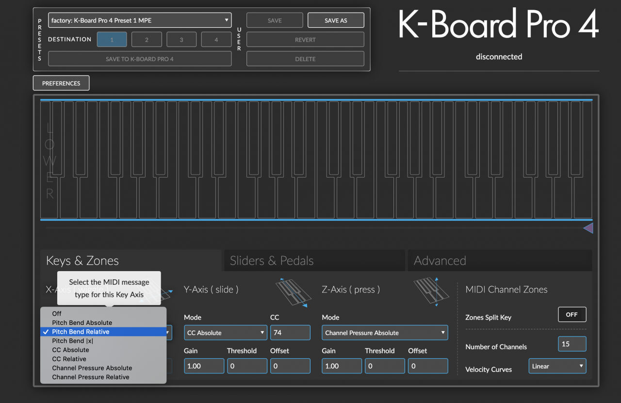 Keith McMillan Instruments provides editors for OSX and Windows, but you can also edit and update your K Board Pro 4 directly online using Web MIDI.