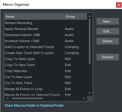 A macro lets you string together multiple keyboard shortcuts into a single keyboard shortcut. For example, suppose you often quantize to 1/16th notes, with 50% strength, and like to add a swing factor of 52%. You can set up a macro so that after selecting your data, you do a single keyboard command and voilà—all three editing operations occur. Keyboard Maestro is probably the most common macro creator for the Mac, while AutoHotKey owns that distinction for Windows. However, you may not need a third-party program; some recording software (e.g., Cubase and PreSonus Studio One) let you create macros within the program.