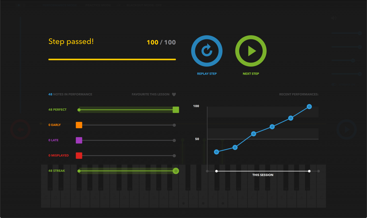 Melodics™ has a unique interface for keyboards that shows you what notes are coming next.