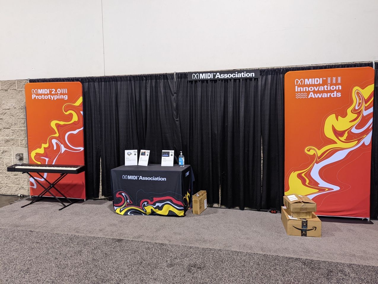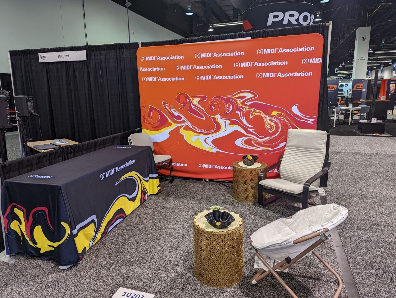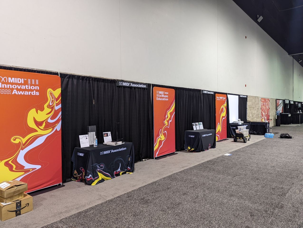 The MIDI Association booth is in a great high traffic spot, but it is also oddly shaped being very long (60 feet) and very thin (5 feet).