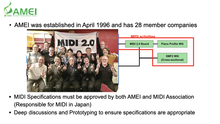 We will be publishing articles on each of those events , but we wanted to start with the open meeting on Saturday, January 20, 2025 where MIDI Association Executive Board Chair Pete Brown (Microsoft), MIDI Association President Tim Carroll (Focusrite), AMEI MIDI 2.0 Working Group Chair Daisuke Miura (Yamaha) and MIDI Association Technical Standards Board Chair Andrew Mee (Yamaha) reviewed the work that The MIDI Association did in 2024 and laid out the future plans for MIDI 2.0.