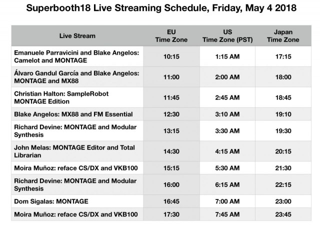 Yamaha Live Streaming Schedule at Super Booth 2018