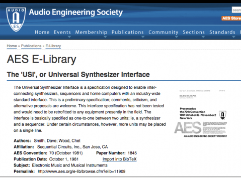 Smith then outlined a specification for a “Universal Synthesizer Interface” (USI). It was developed with the assistance of SCI’s Chet Wood and presented at the Fall, 1981 convention of the Audio Engineering Society (AES).