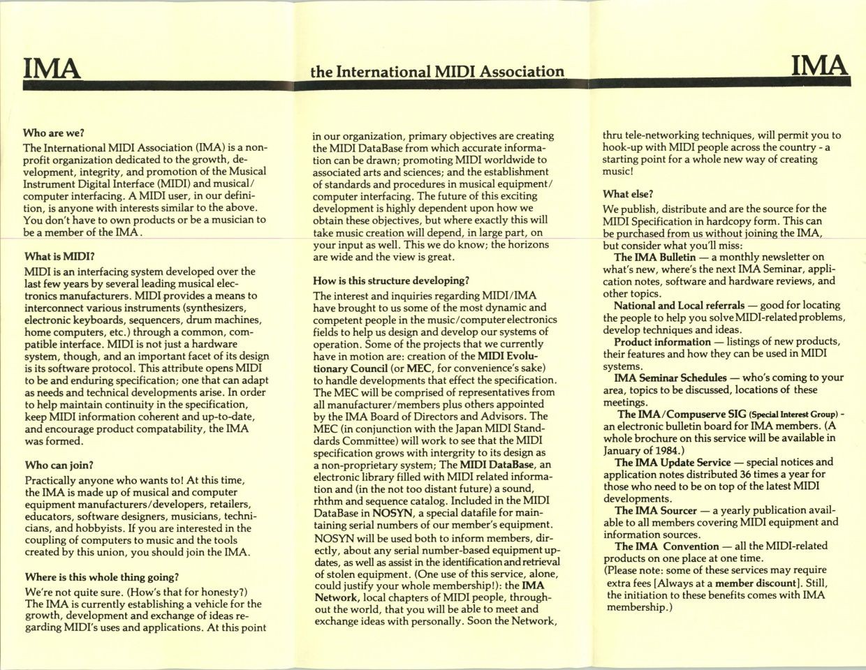 1984 Turmoil In MIDi Landof the International MIDI Association (IMA).