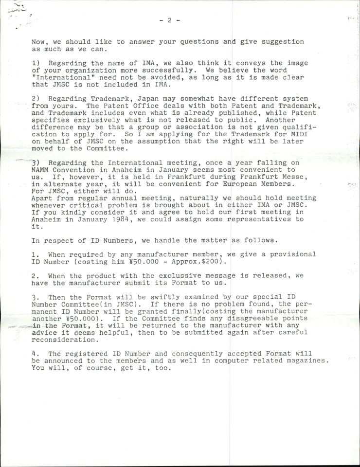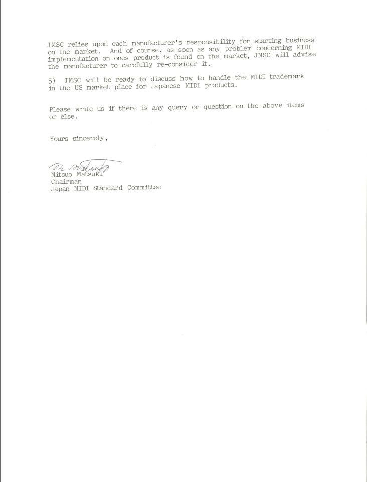 Mieda-san from Korg responds on behalf of the Japanese companies to the meetings at the 1981 Gakki Fair with Sequential and Oberheim and confirms the discussion that theyย had at the Gakki Fair.