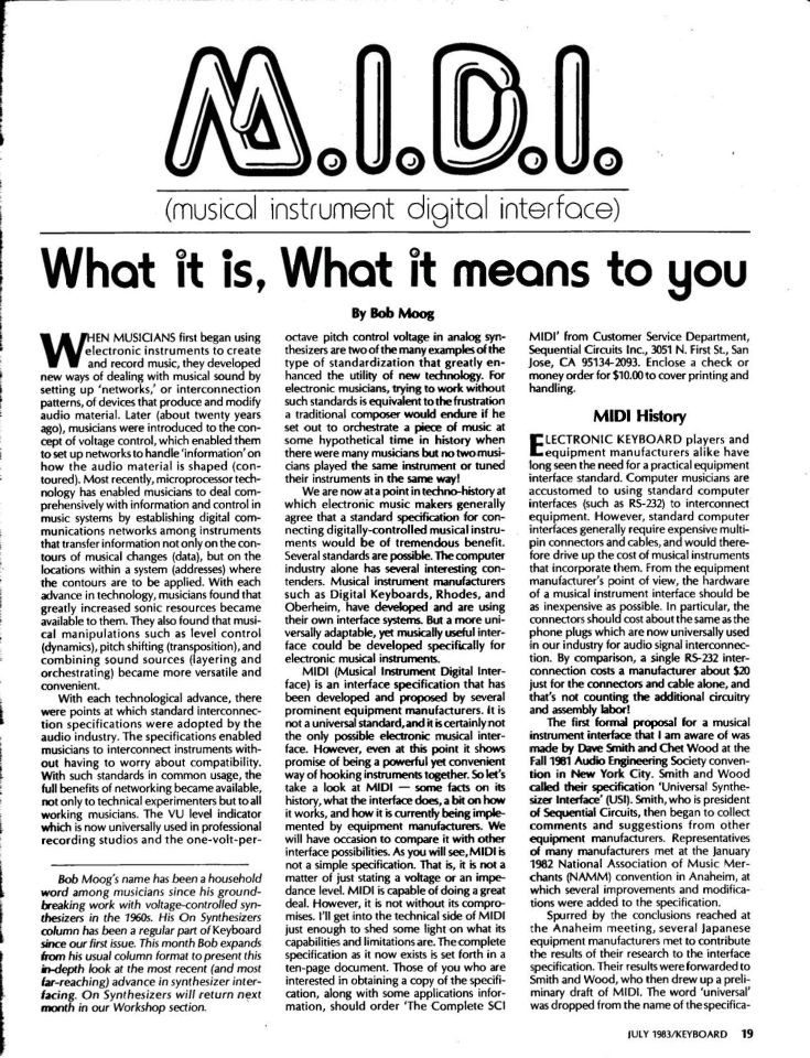 Bob Moog publicly announced MIDI in Keyboard Magazine