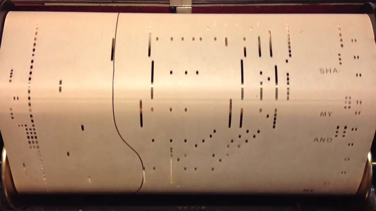 Notice the words on right side of the role (read from bottom to top. Player pianos were actually the very first Karaoke machines, another function they have in common with MIDI !