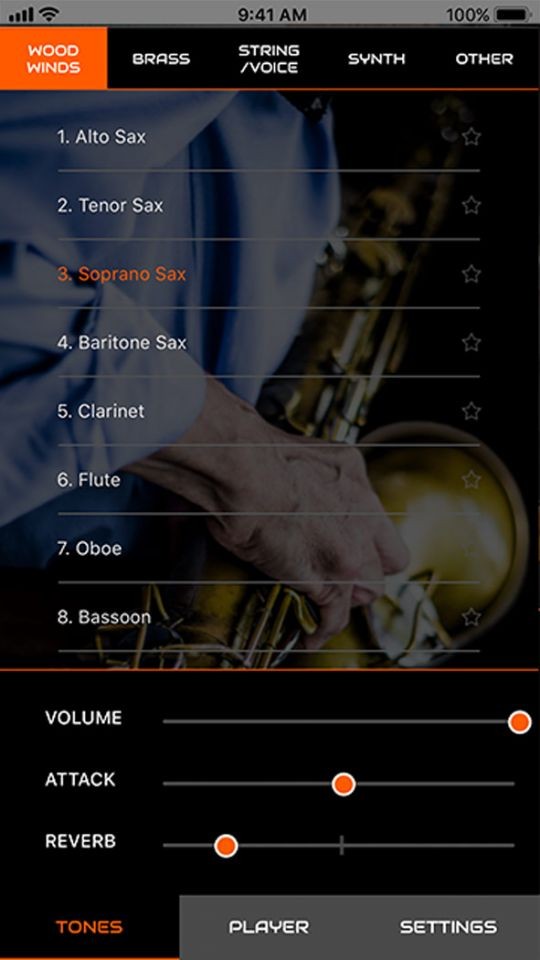 - Realistic onboard sax tones, including alto, tenor, soprano, and baritone sounds