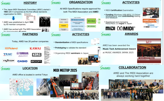 The day started with a presentation by Takayuki Tomisawa from Roland, Chair of AMEI’s MIDI 2.0 working group who explained their long cooperative relationship with the MIDI Association.