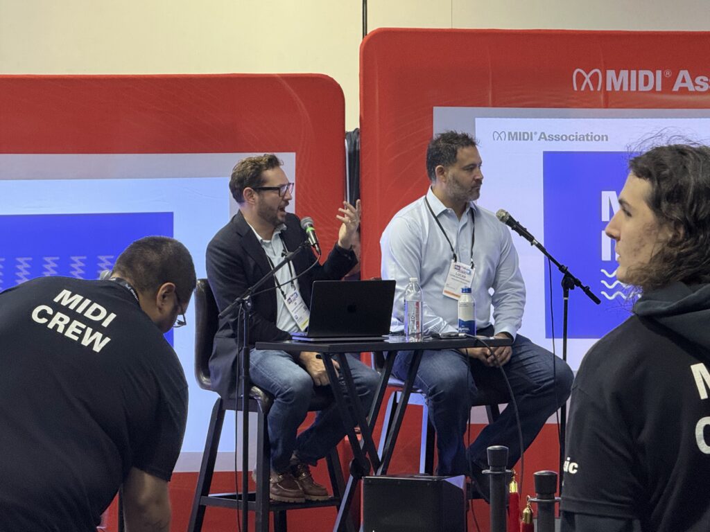 Then Jean Baptiste Thiebaut from Music Hackspace held a panel with MIDI Innovation Award Judge Lucas Cantor Santiago, 2026 MIDI Innovation Award winners Anthony Dickens from Circle Instruments and Mike Venter from Azoteq talked about their experiences with The MIDI Innovation Awards.