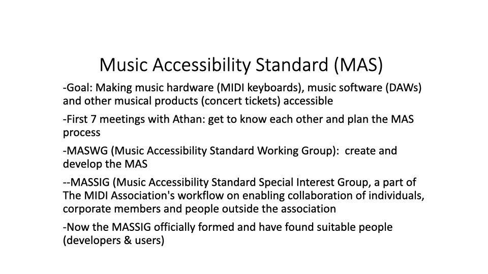 Members of theย Music Accessibility Standard Special Interest Group (MAS SIG) outlined their vision for the future of Music Accessibility in a Youtube Live event on the MIDI Association Youtube channel.