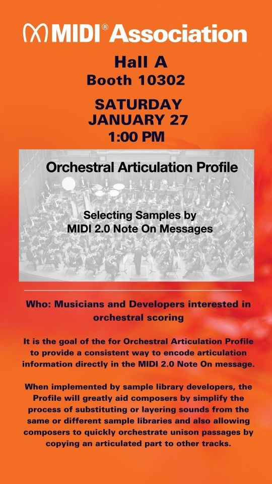The MIDI Association showed a working demo of the Orchestral Articulation Profile at NAMM 2026.