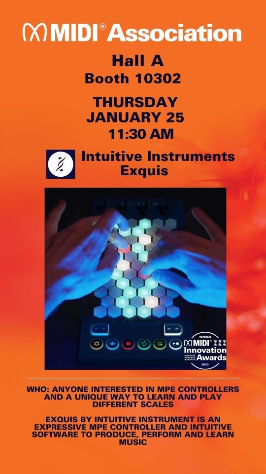 We also have Booth 10604 which is a 10′ by 10′ booth shared between Intuitive Instruments who won the Commercial Hardware category in The MIDI Innovation Awards in 2023 and the other MIDI Innovation Award winners