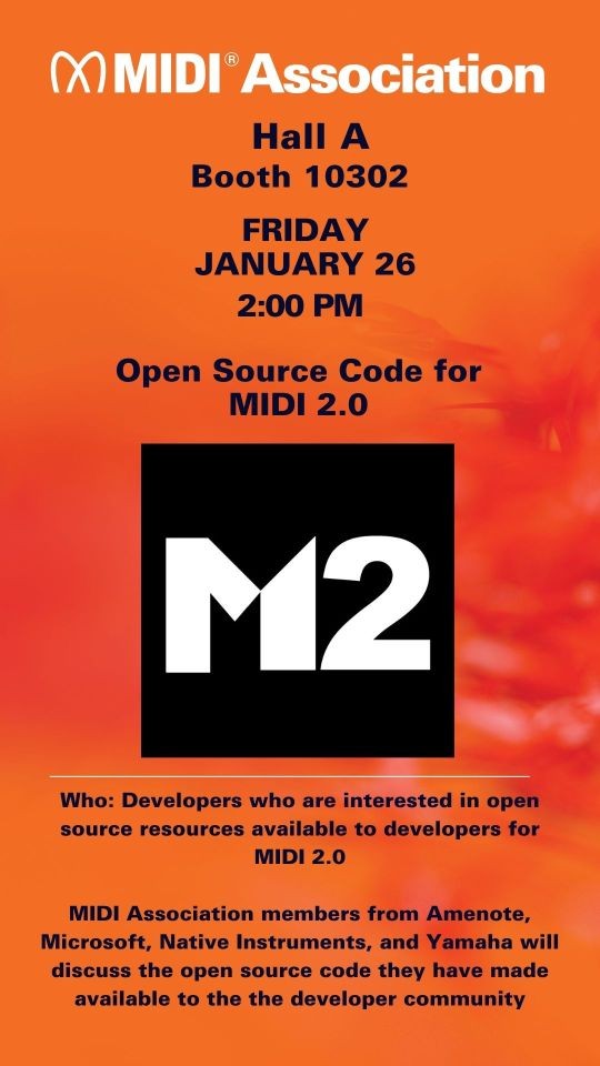 Join us on Youtube for the Open Source Code for MIDI 2.0 At Winter NAMM 2024 panel discussion.
