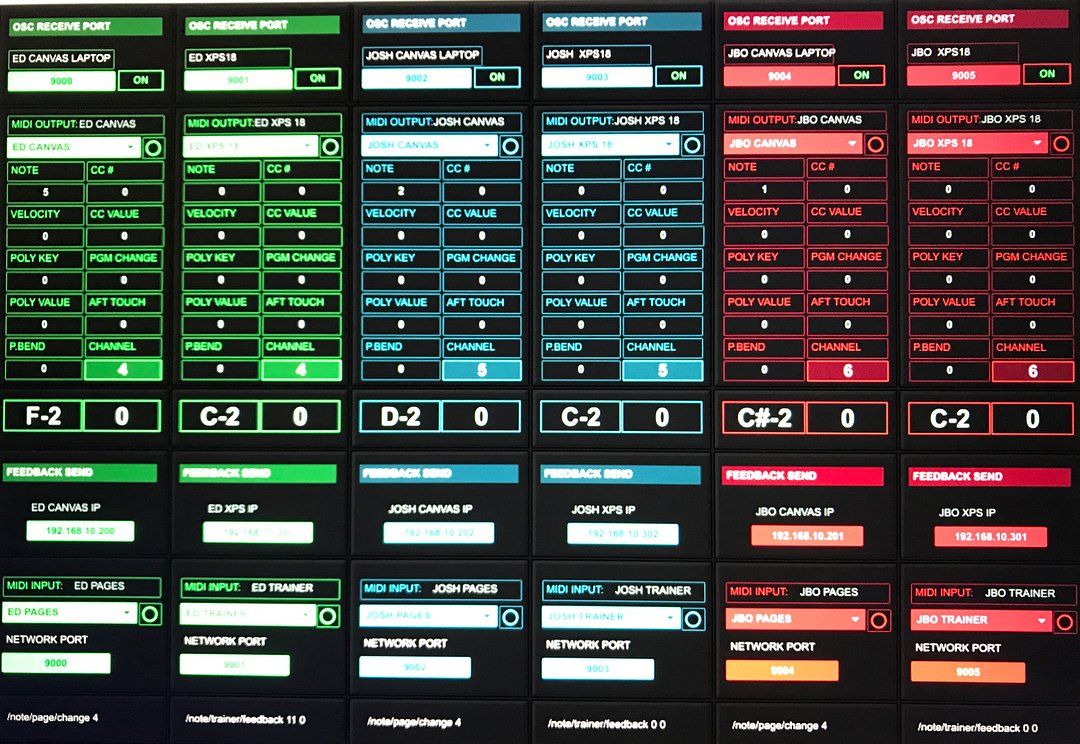 “We have all these crazy turbine-looking drum things and inside of those are Roland PD-125X V-Drum Mesh Snares. We hook all those up to a Roland Octapad, which all three of us have sitting about 10 feet behind us.”