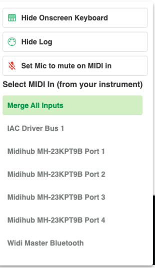 You can merge All Inputs to play any MIDI device connected to your computer and send it out Web MIDI. You can select which MIDI device is sent MIDI from MIDIable and choose what sounds are played by remote Web MIDI.
