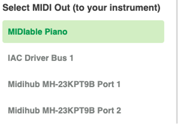But MIDIable solves all these problems for you. Whether you are using a connected MIDI device or the MIDIable piano, you are listening to sounds created locally so there is no Internet delay.