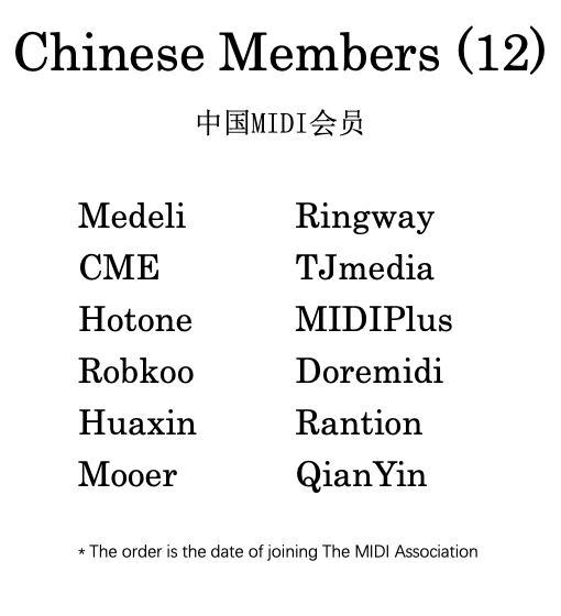 - Develop Chinese members of The MIDI Association