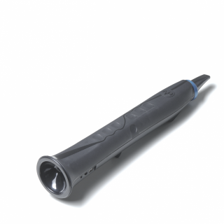 The Sylphyo is an electronic wind instrument that reproduces the feeling of an acoustic wind instrument. Like them, it is played by blowing into a mouthpiece and selecting notes using keys on the front of the instrument. However, unlike other wind instruments, the Sylphyo is also sensitive to your movements, as well as the way you touch it, offering novel expressive possibilities.